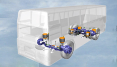 四连杆门式桥前空气悬架系统;引进匈牙利RABA技术门式桥,进口盘式制动器。价格比进口同类产品低30%-40%